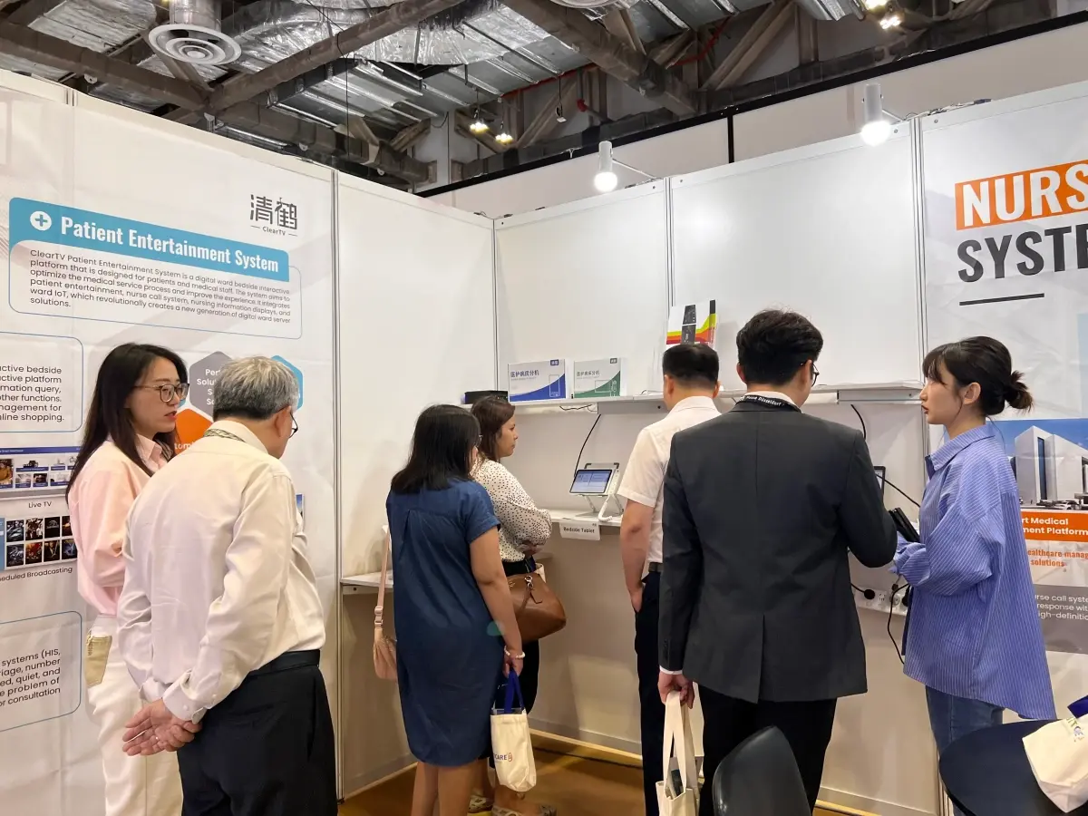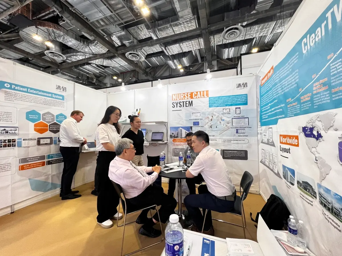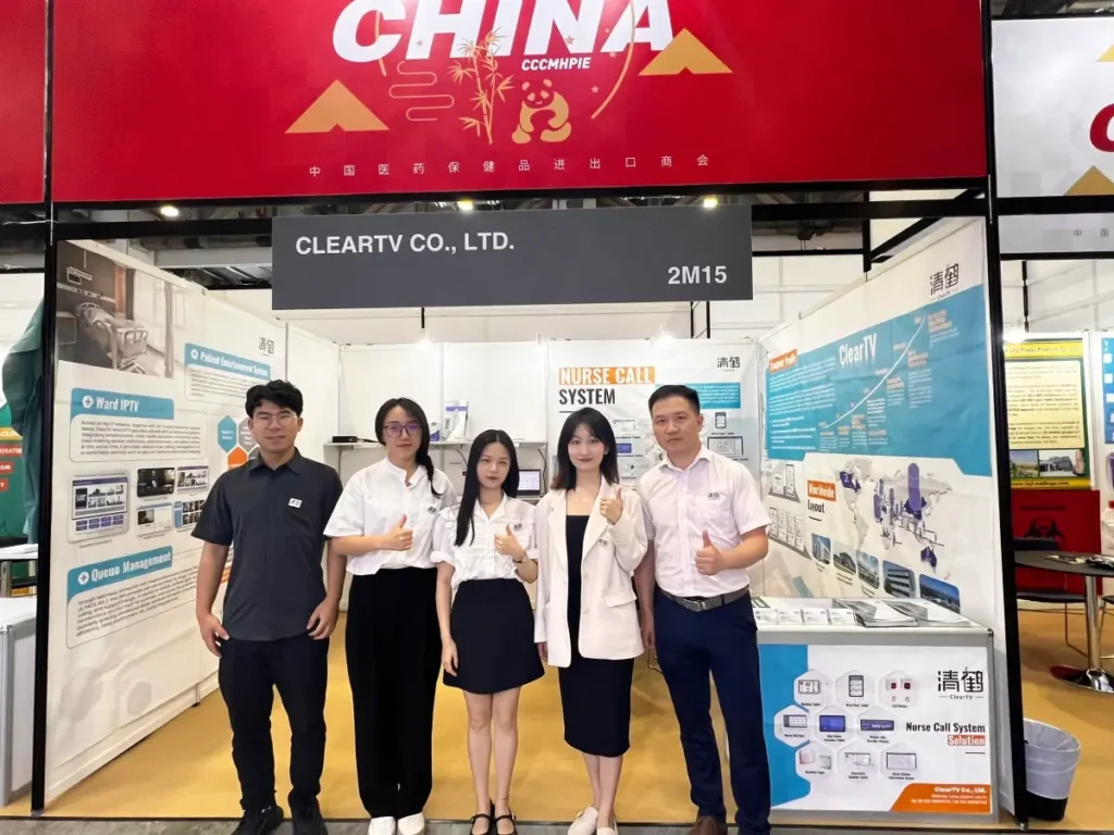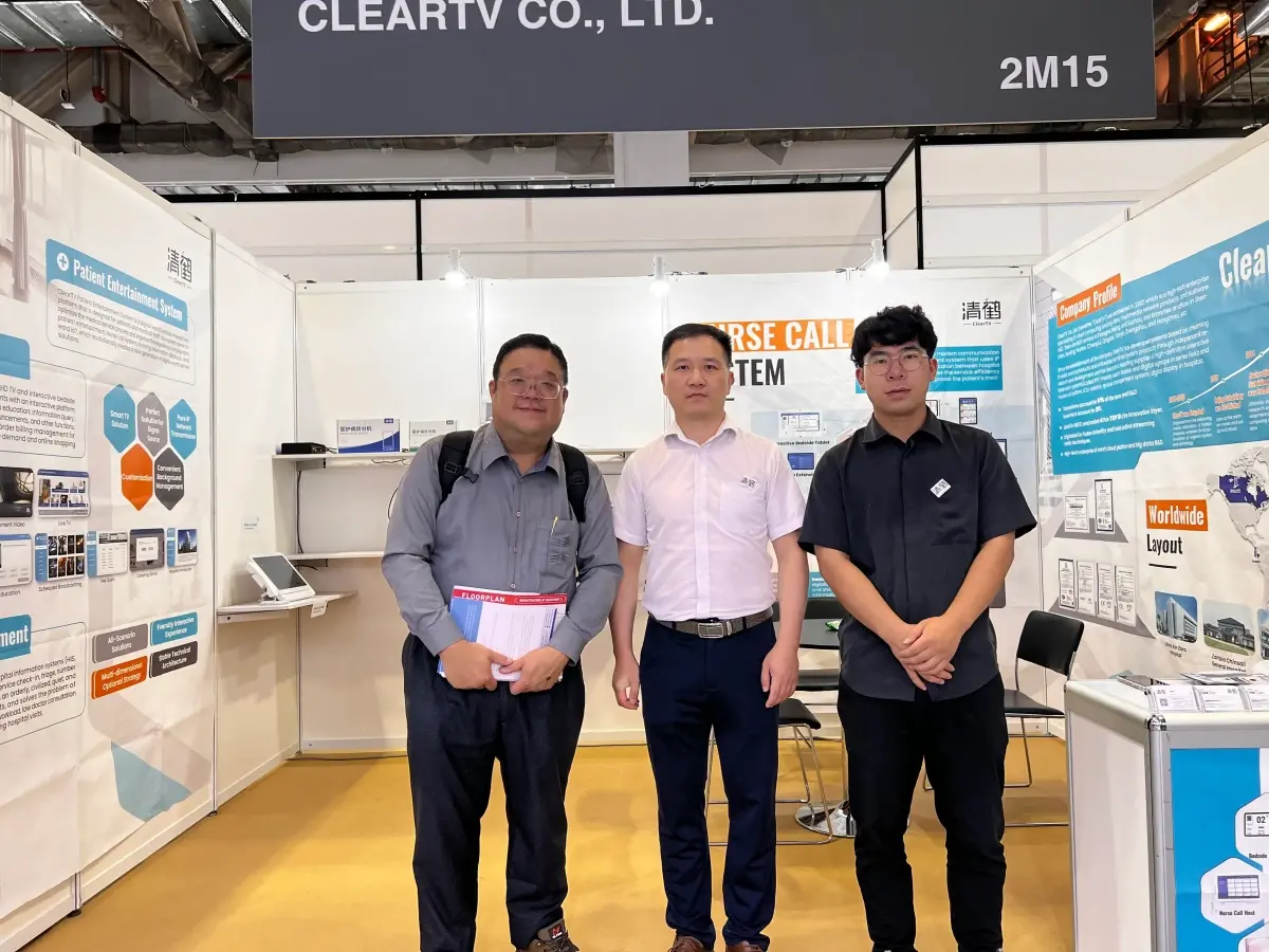 At this exhibition, ClearTV presented a series of smart products such as the Nurse Call System, Smart Ward, Ward IPTV, Queue Management System, and Patient Entertainment System, etc., and sent a technical team to give professional explanations and technical support in the exhibition.