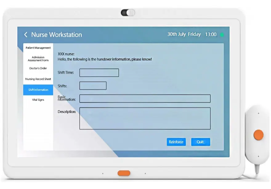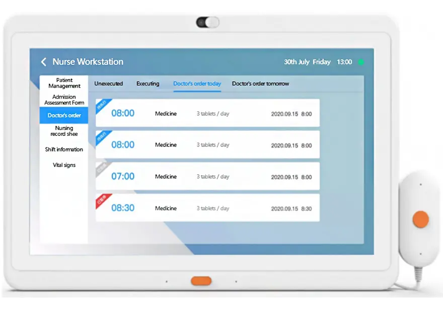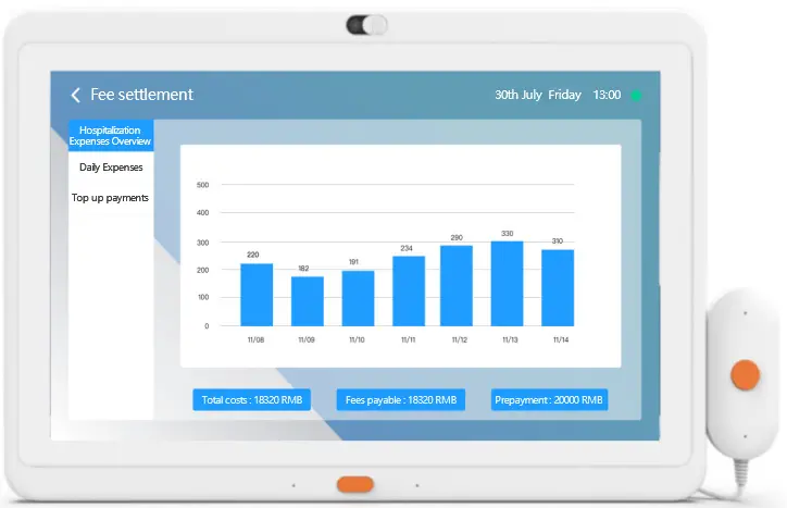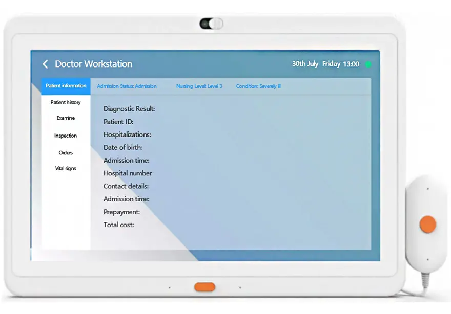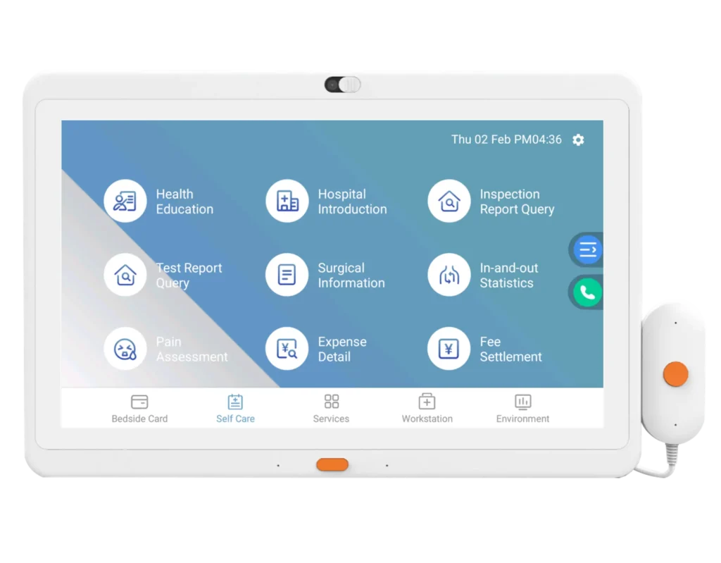 Various medical service information can be provided directly to patients. Its display content covers the patient’s personal information, medical treatment, test results, nursing information, and other aspects. Through interactive bedside tablet with observation and automated interface display, patients can understand their own conditions promptly, participate in medical decision-making, and improve the transparency of medical services and patient satisfaction.